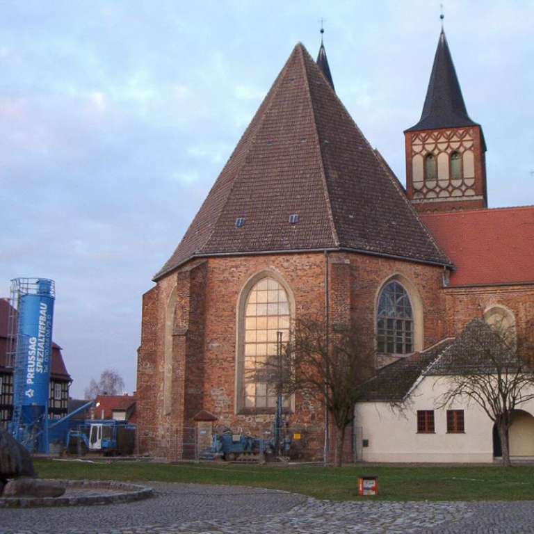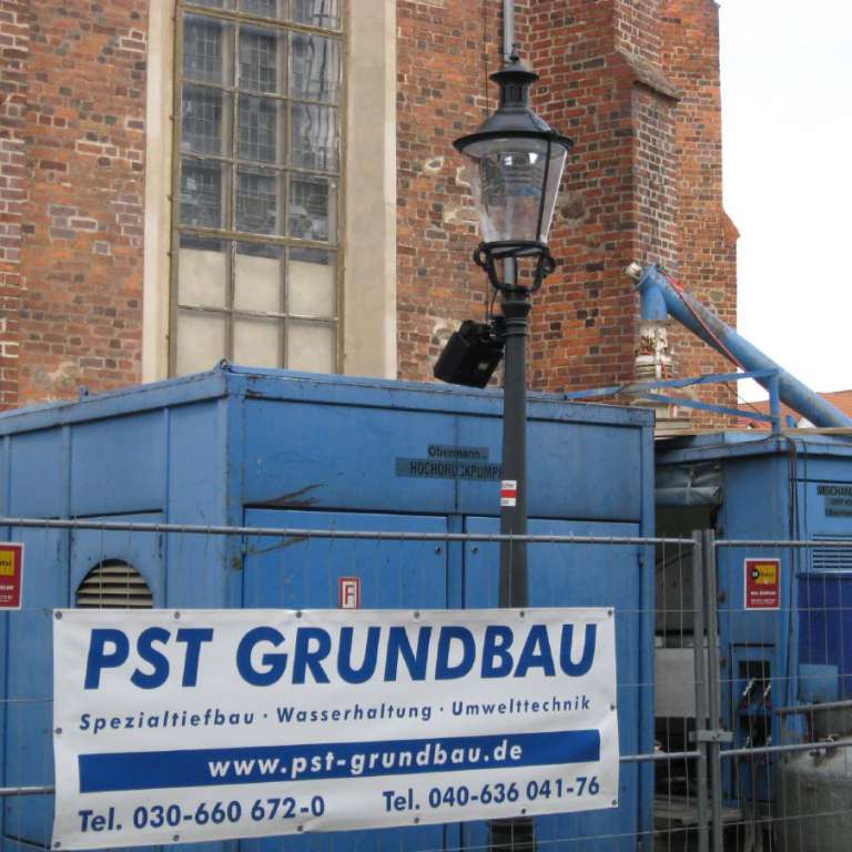 Im November 2001 erhielten wir den ersten Auftrag der Kirchengemeinde St. Sebastian für die Nachgründung der alten Feldsteinfundamente. Weitere Bauabschnitte folgten in den Jahren 2002 bis 2005. Der letzte und schwierigste Teil, der 5. und 6. Bauabschnitt mit der Unterfangung der inneren Kirchenstützen wurde in der Zeit von September bis Oktober 2008 ausgeführt.