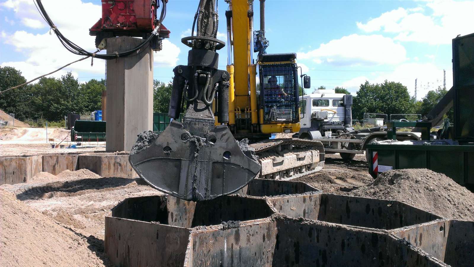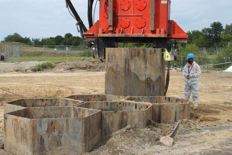 Mit dem Wabenverfahren wurden Aushubtiefen von 3,50 m bis 8,50 m abgedeckt. Bereiche, die nicht komplett frei von baulichen Resten waren, wurden mit dem Großlochbohrverfahren mit Tiefen von 3,50 m bis 7,50 m ausgetauscht.