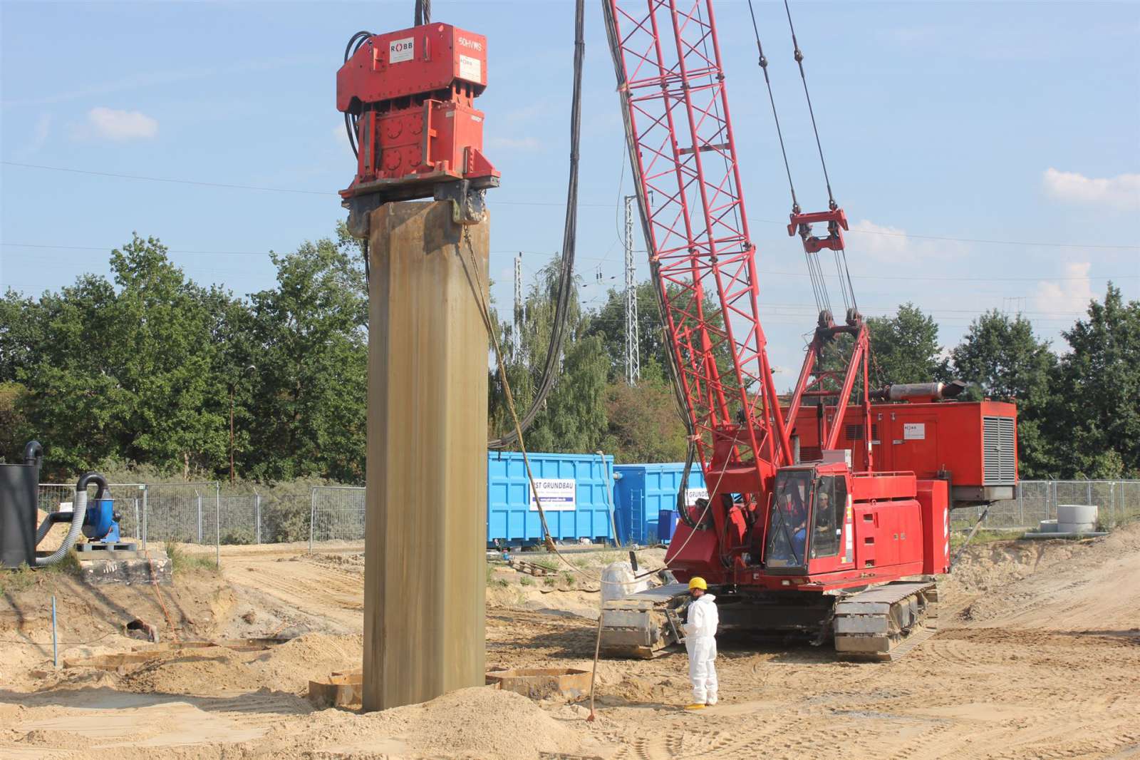 Im Bereich der Großlochbohrungen erfolgte aufgrund der systembedingt unverdichteten Verfüllung der Bohrlöcher eine nachlaufende Tiefenverdichtung. Diese wurde mittels der vorhandenen Wabeneinheit als Rütteldruckverdichtung ausgeführt.