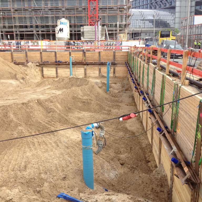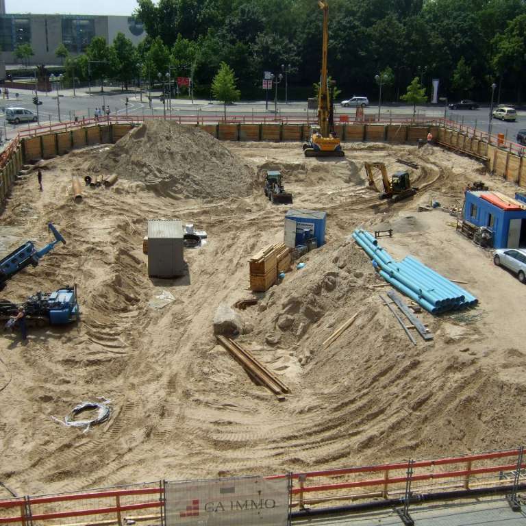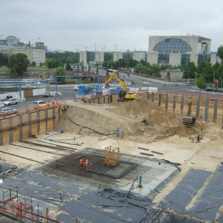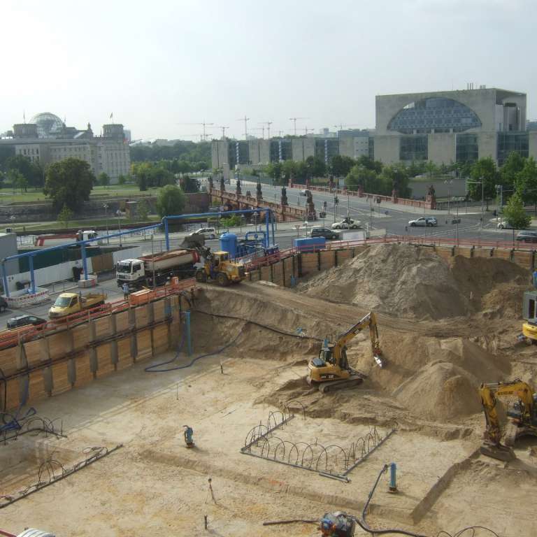 Unmittelbar südlich vor dem Berliner Hauptbahnhof errichtet die CA Immo als Teil eines städtebaulichen Gesamtensembles ein Büro- und Geschäftsgebäude. Das Grundstück auf dem Washingtonplatz im Bezirk Mitte-Tiergarten mit der Bezeichnung Lehrter Stadtquartier MK 7 hat eine Grundfläche von ca. 3.600 m². Die PST Grundbau GmbH erhielt den Auftrag zur Herstellung der ca. 7 m tiefen Baugrube als Komplettmaßnahme.