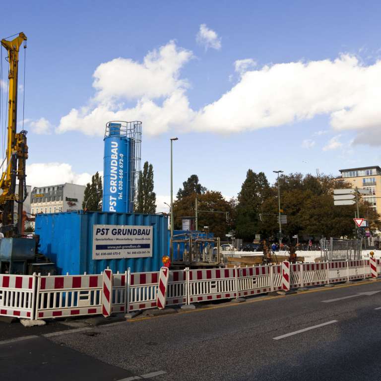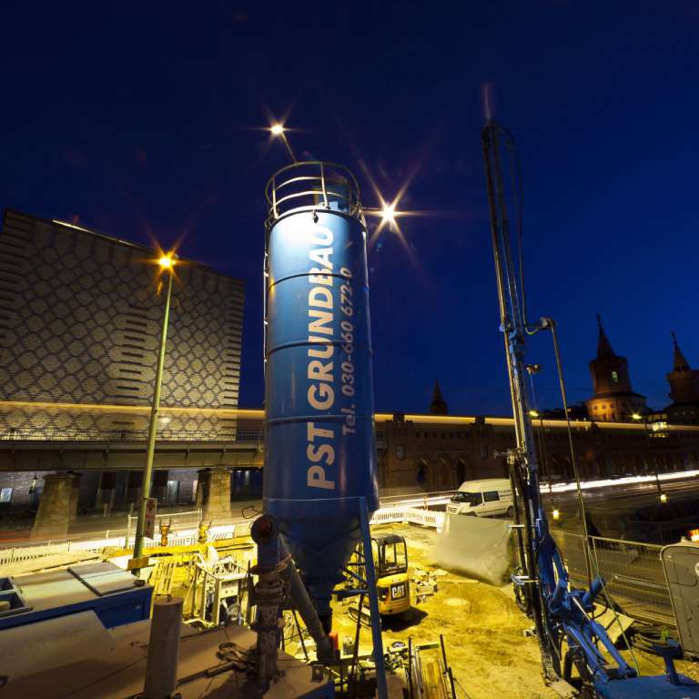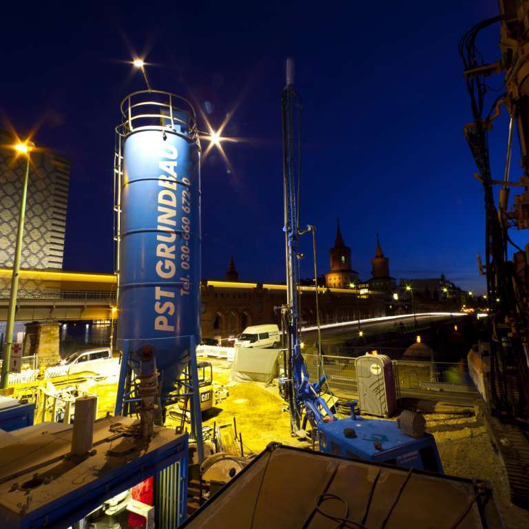 Die PST Grundbau GmbH erhielt von der Sonntag Baugesellschaft mbH, die das Ingenieurbauwerk errichtet, den Auftrag zur Herstellung der HDI-Sohle als untere Absperrung des Bautroges und zur Herstellung der Dichtsäulen zwischen UK Spundwand und HDI-Sohle. Die Arbeiten erfolgen unter beengten Verhältnissen auf der halbseitig gesperrten Brücke und gleichzeitigem Weiterbetrieb des Kanals neben einem DN 1600 Provisorium.