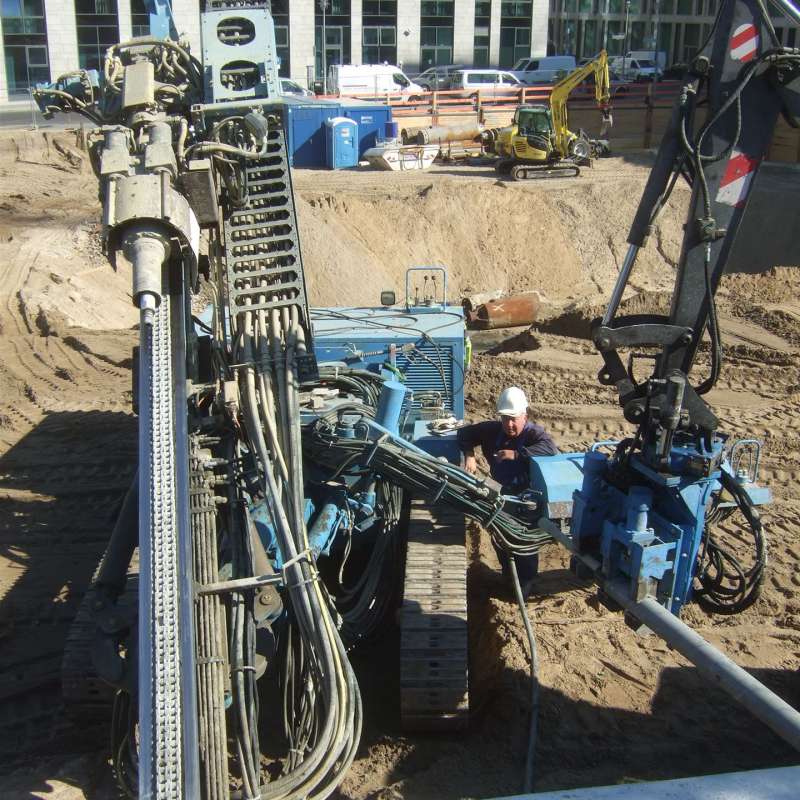 Eine weitere Besonderheit ist die Forderung, das Brückenwiderlager Alt-Moabit mittels einer verformungsarmen Baugrubenwand zu sichern und die Ausführung der Arbeiten durch ein externes Büro messtechnisch zu lassen. Zur Sicherung der Baugrube in diesem Bereich wurde eine überschnittene Bohrpfahlwand mit Dauerankern geplant und ausgeführt.