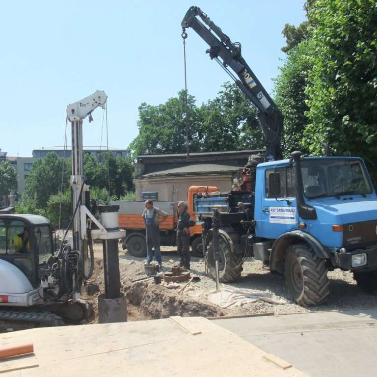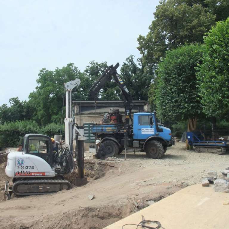Teile der barocken Maueranlagen werden zusätzlich mit Kleinverpresspfählen nachgegründet.
