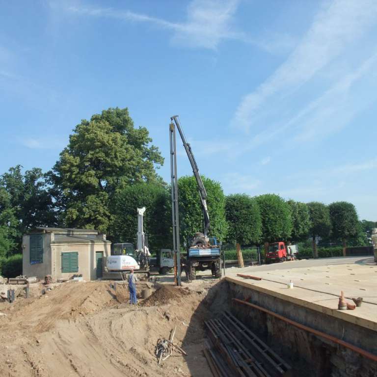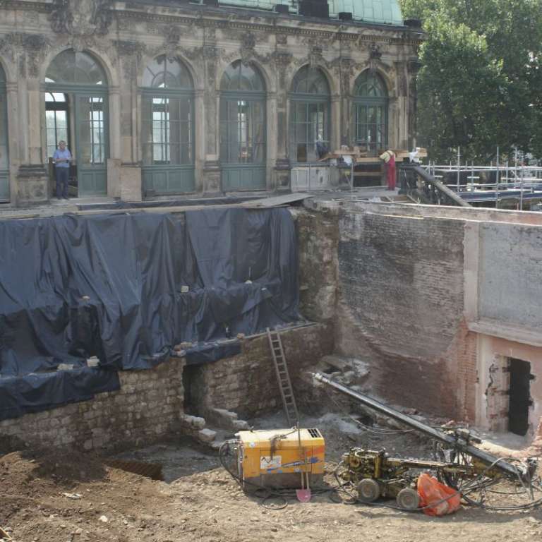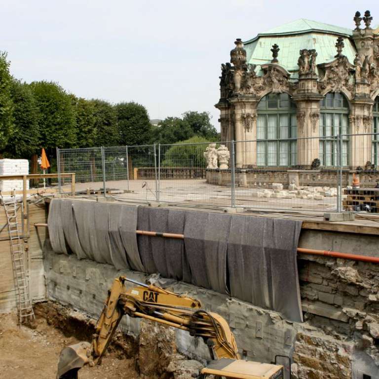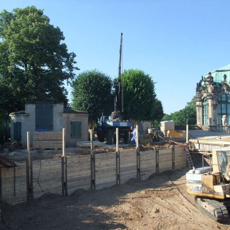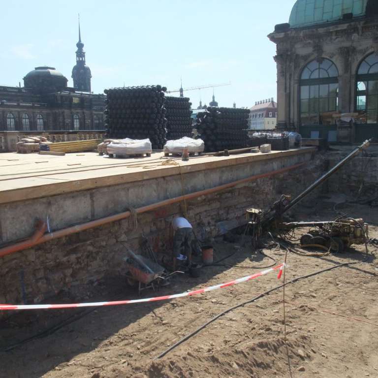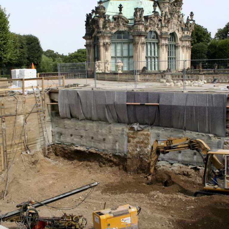 Hierzu wird die Technikzentrale unterirdisch im alten Zwingerwall errichtet. Die 400 Quadratmeter große und 7,20 Meter tiefe Baugrube wird unter äußerst beengten Platzverhältnissen erstellt.