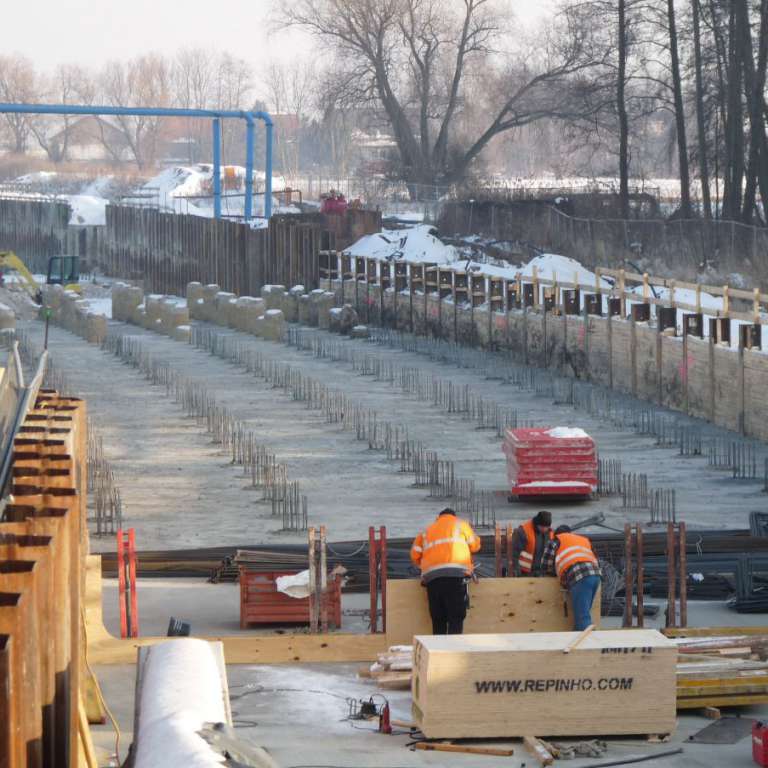 Es werden unter anderem 125 Großbohrpfähle mit einem Durchmesser von 0,62 Metern und einer Länge von bis zu 13 Metern zur Gründung eines Schienentroges hergestellt. Der Schienentrog quert dort eine große Torflinse. Zum Einsatz kommen mehrere Großbohrgeräte der Firmen Wirth und Bauer. Die Arbeiten werden auf Grund des engen zeitlichen Rahmens im Mehrschichtbetrieb ausgeführt.