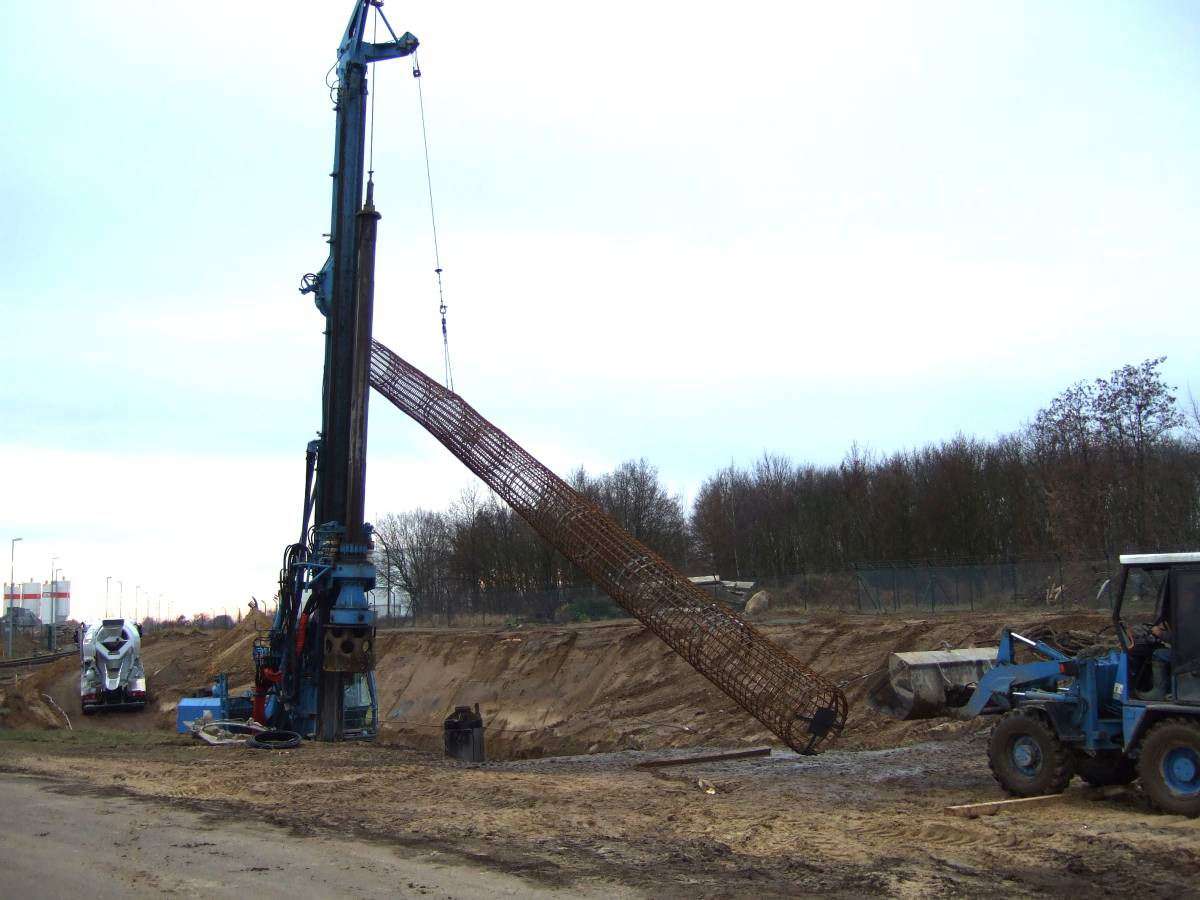 Zur Ausführung kamen 34 Bohrpfähle mit einem Durchmesser von 120 cm und Längen von 13,00 m bis 20,00 m, wofür die leistungsfähige Drehbohranlage Wirth EcoDrill 22 eingesetzt wurde, deren Leistungsvermögen im Bedarfsfall durch eine Verrohrungsmaschine erhöht werden kann.