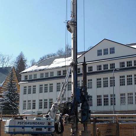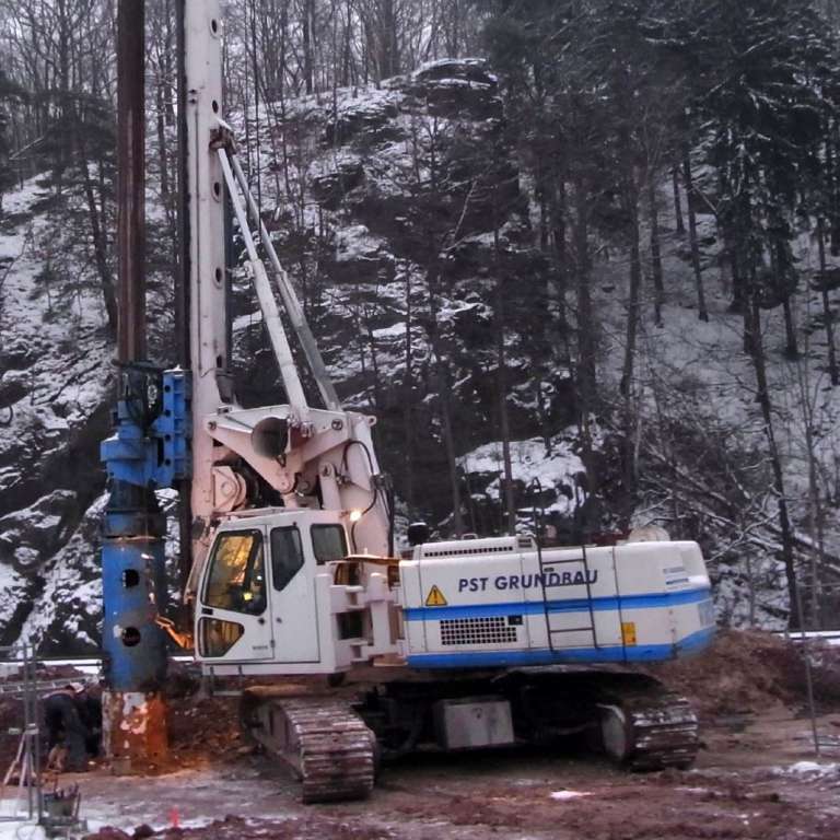 PST Grundbau GmbH wurde nach beschränkter Ausschreibung mit der Herstellung der Baugrube einschl. Verbau als Trägerbohlwand, Bohrpfahlgründung und Erdarbeiten beauftragt.
