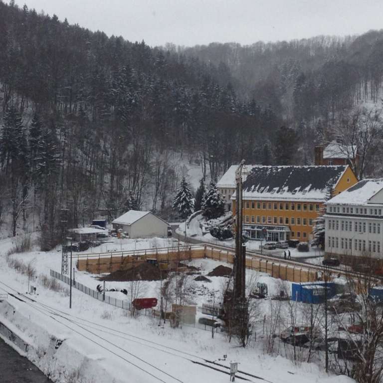 Die Lange Uhren GmbH errichtet auf dem Gelände der ehemaligen Müglitzbrauerei in Glashütte einen neuen Gebäudekomplex. Das Grundstück befindet sich zwischen der Hauptstraße und der Müglitz in einem Talquerschnitt.