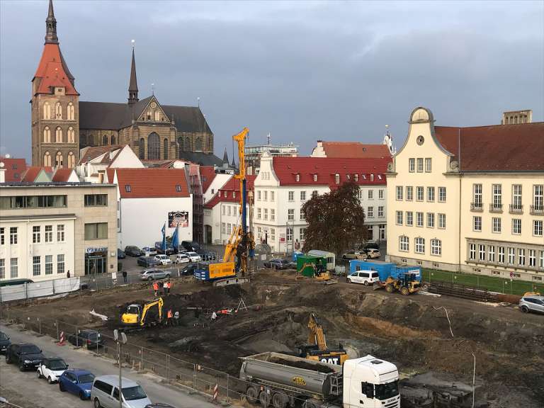 Die Randalswood Germany GmbH bebaut den Glatten Aal in Rostock. Im ersten Bauabschnitt entstehen Eigentumswohnungen auf fünf Etagen. Die PST Grundbau GmbH erhielt den Auftrag für den Baugrubenverbau als Trägerbohlwand/Bohrpfahlwand. Informationen zum HanseKarree Glatter Aal erhalten Sie auf der Projektseite www.hansekarree.de.