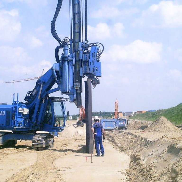 Die Firma Matthäi Bauunternehmen GmbH & Co. KG hat die PST Grundbau GmbH mit der Einbringung von 2.100 m² Dauerspundwand und 115 m² Ankerspundwand beauftragt.