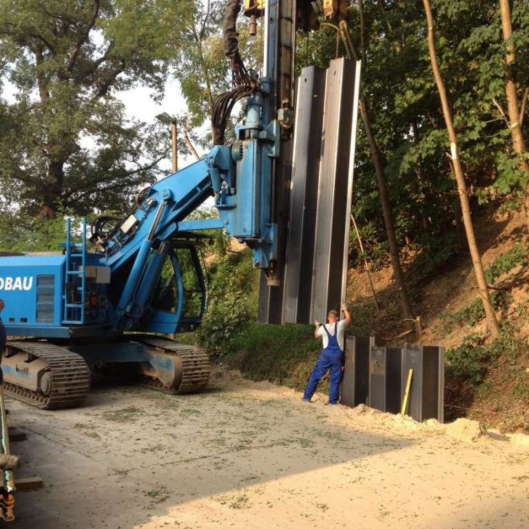 Herstellen einer eingepressten Spundwand zur Böschungssicherung