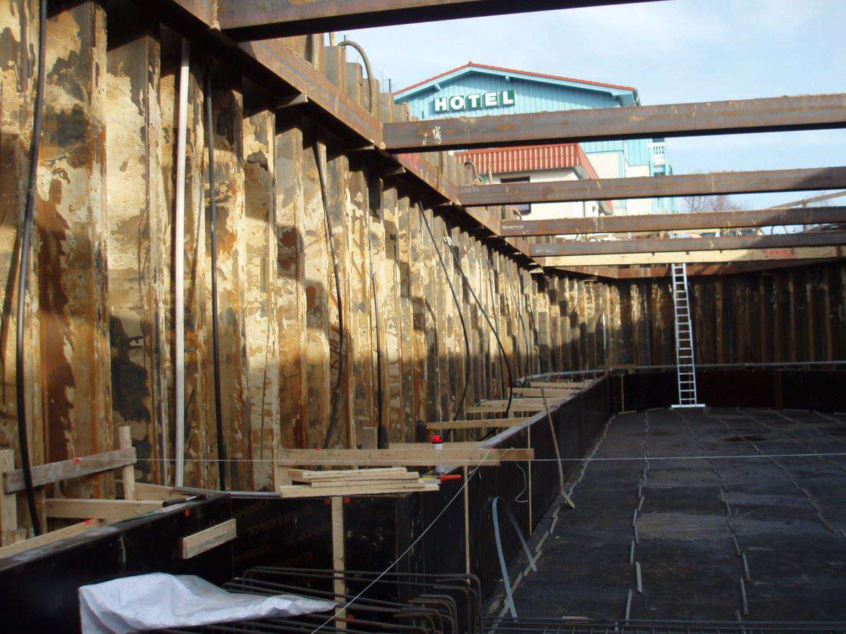 Der Bauherr erteilte der PST Grundbau GmbH hierzu den Auftrag für den Spezialtiefbau und die Wasserhaltung.