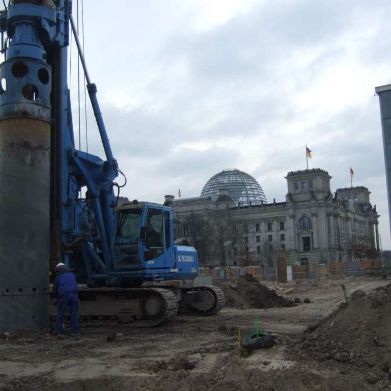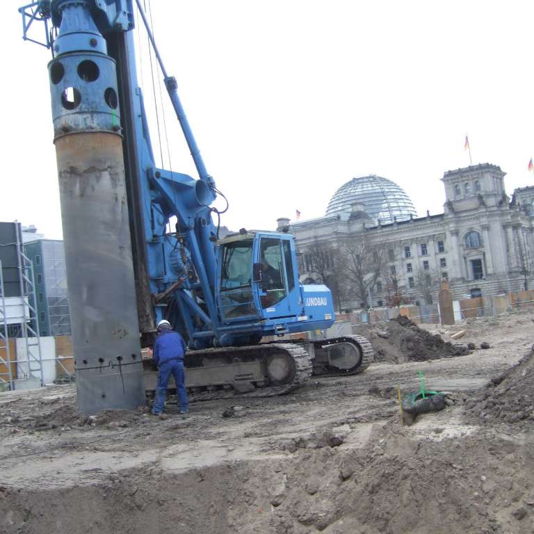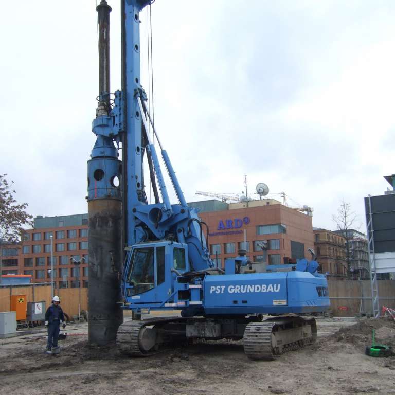 Die PST Grundbau GmbH führt mit einer Drehbohranlage Wirth Eco 22 eine Trassenräumung (Hindernisbeseitigung) mittels Bohrungen bis 15 Meter Tiefe für die nachfolgenden Schlitzwandarbeiten aus.