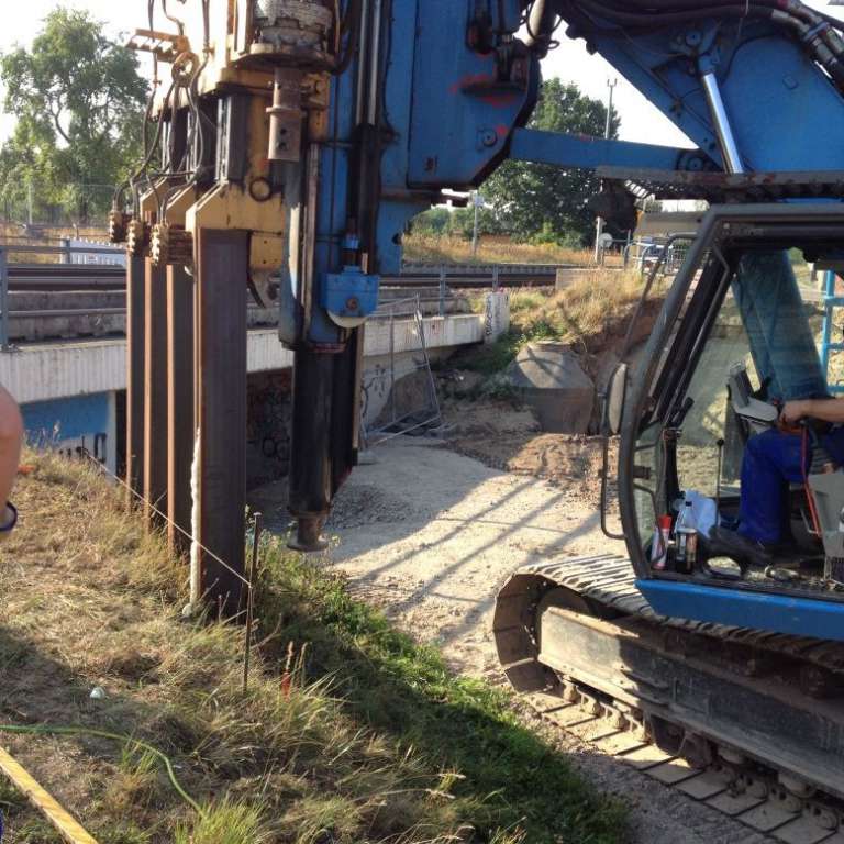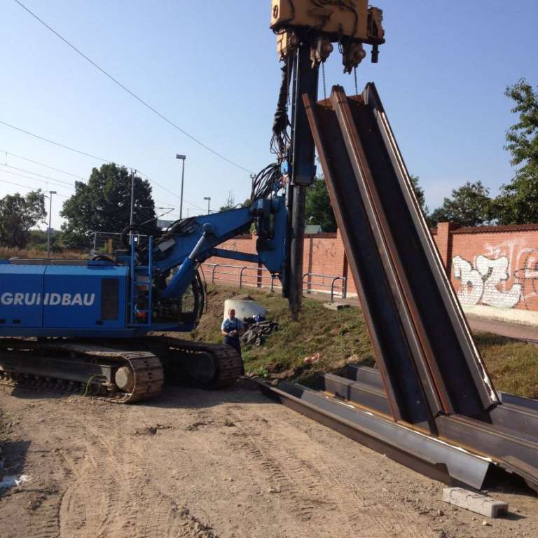 Herstellen einer eingepressten Spundwand zur Baugrubensicherung
