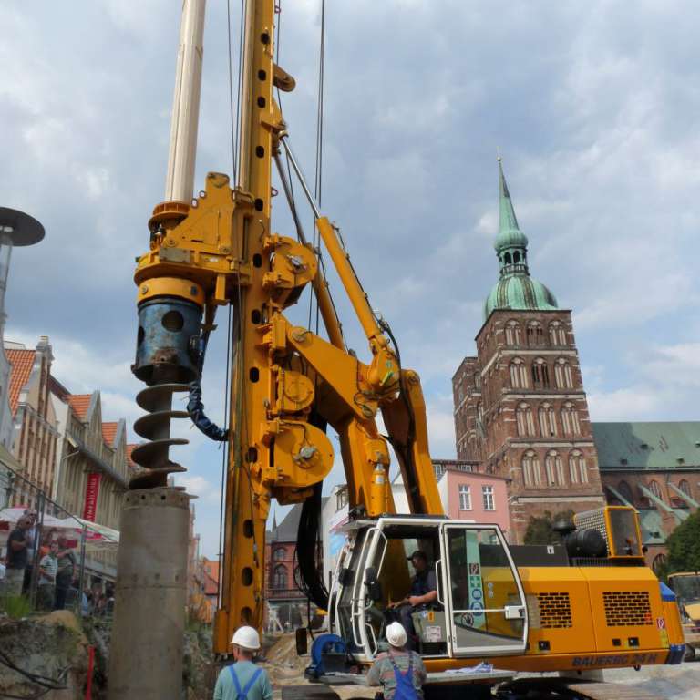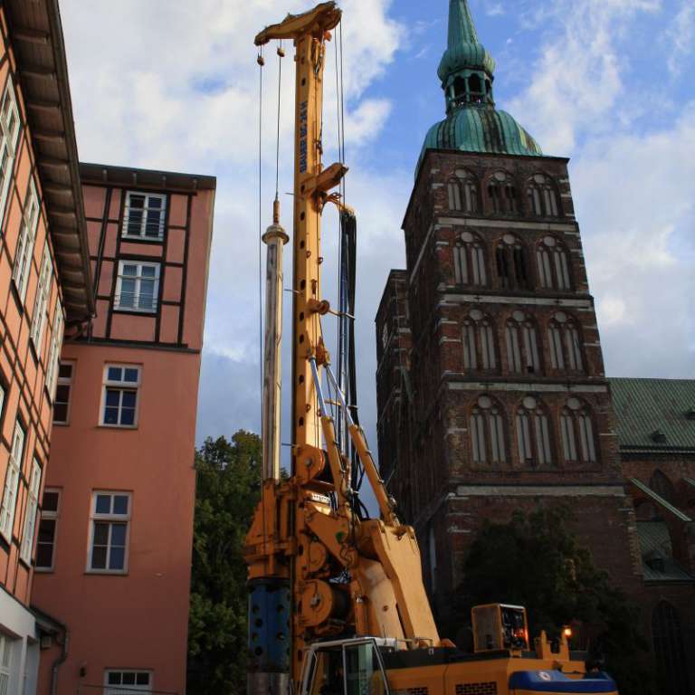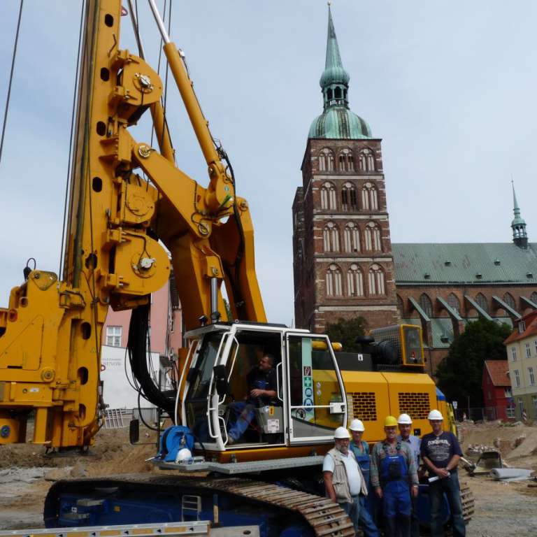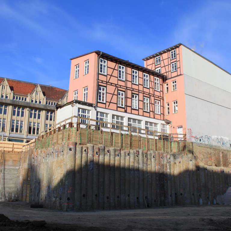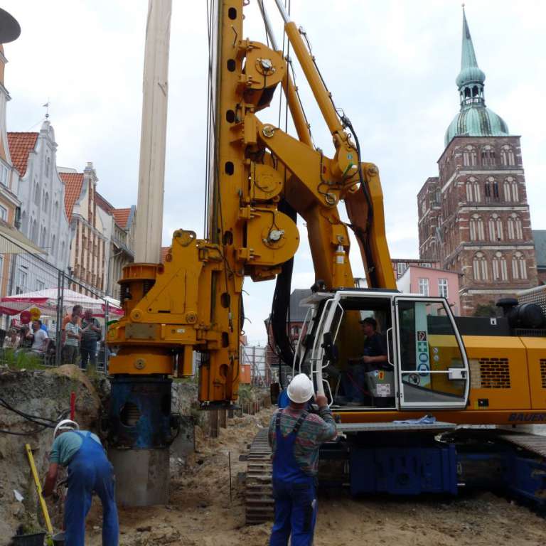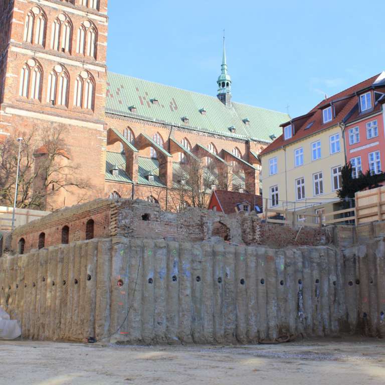 In der Stralsunder Altstadt (Quartier 17 Rathausplatz) baut die TLG Immobilien GmbH, Niederlassung Mecklenburg-Vorpommern einen Büro- und Wohnkomplex mit integrierter Tiefgarage.