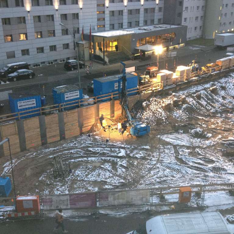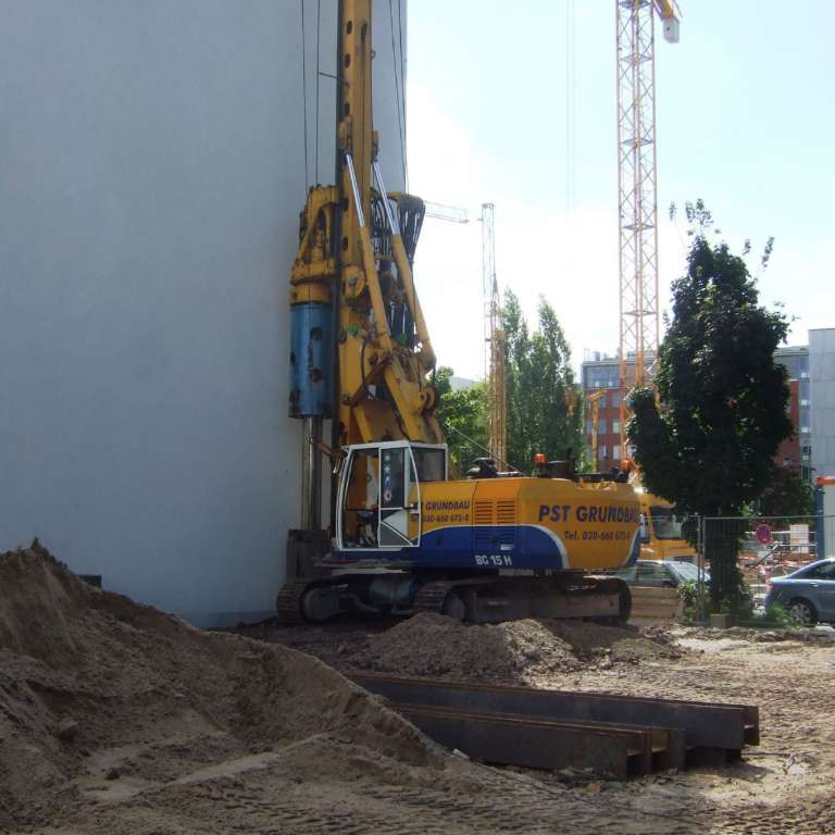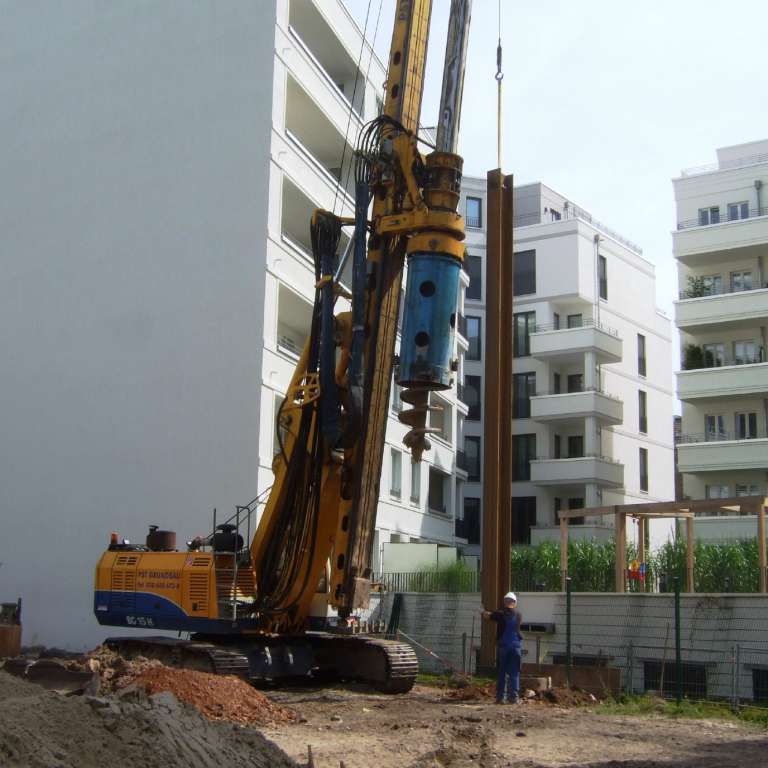 Die PST Grundbau GmbH wurde vom Projektentwickler LAGRANDE mit der Herstellung der Baugrube als Komplettleistung einschließlich Übergabe mit fertiger Sauberkeitsschicht beauftragt.