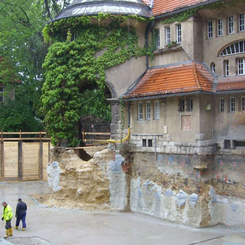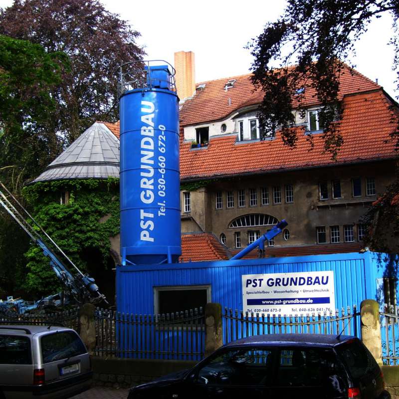 Im Zuge des Umbaus und der Sanierung der ehemaligen Villa Erxleben des Bankiers Julius Erxleben in Berlin-Grunewald, erhielt die PST Grundbau den Auftrag zur Herstellung der kompletten Baugrube für die geplante Tiefgarage. Hierzu werden die beiden angrenzenden denkmalgeschützten Gebäude nach bauaufsichtlicher Zulassung PREUSSAG Jet im Düsenstrahlverfahren unterfangen und die restliche Baugrube durch eine freistehende Trägerbohlwand eingefasst.