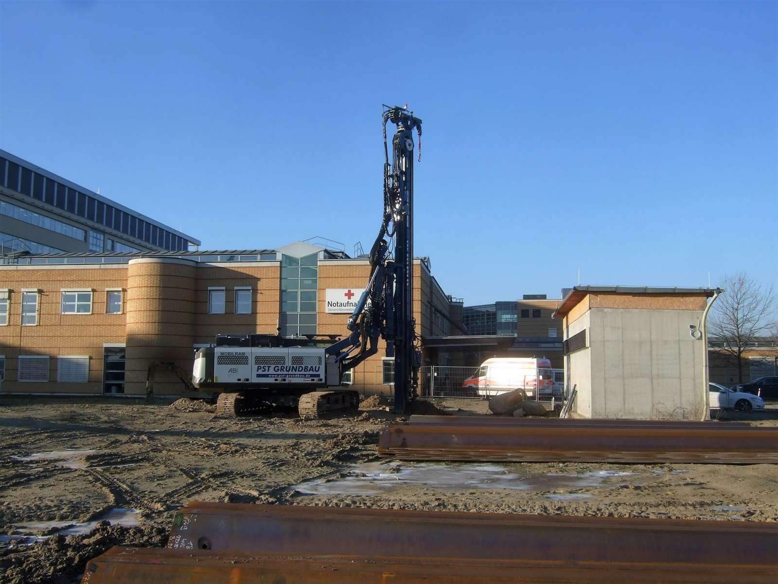 Kleinverpresspfähle zur Tiefgründung von Teilen des Neubaus sowie des Kranfundaments